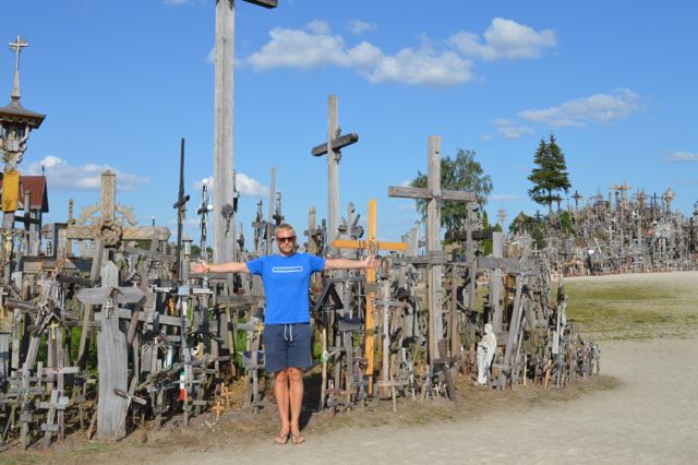 Craig being a cross at the Hill of Crosses