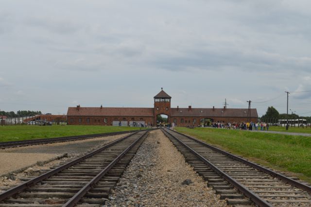 The iconic entrance to Birkenau concentration camp.