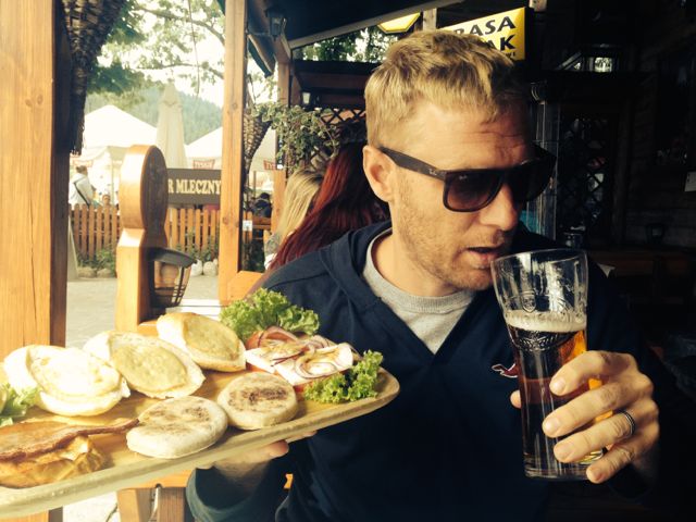 Craig with his Polish beer and local food.