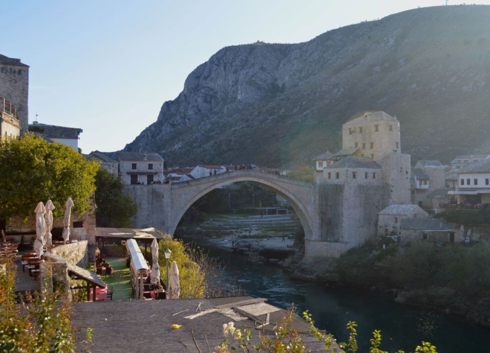 Mostar Bridge, destroyed during the war but rebuilt to the original design.