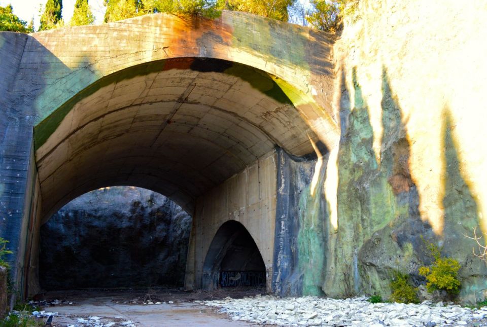 Hidden bunkers which stored military aircraft.