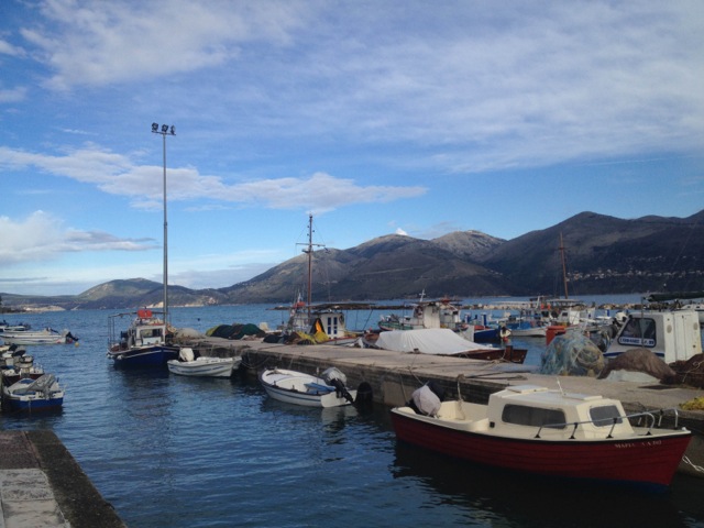 Lixouri, walking along the harbour waiting for the pizza restaurant to open.