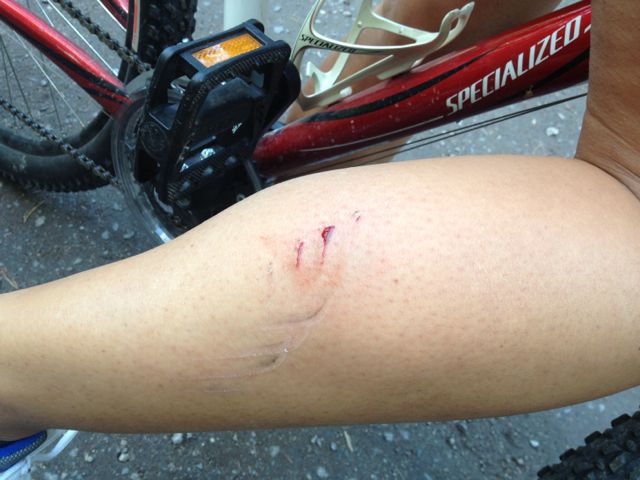 My first MTB injury, blood and everything! Not to be outdone Craig then launched himself over the handlebars of his bike and cracked his ribs.