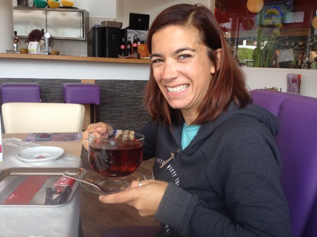 Me in my element with a giant cuppa.